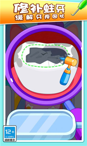 1.原创卡通风格动物牙医主题。玩家扮演可爱的兽医,为可爱的动物治疗口腔疾病;