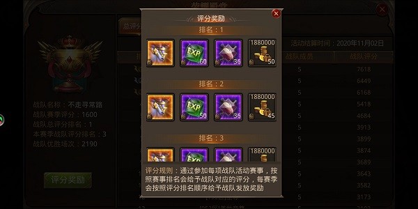 认真参加每一项活动,获得更多的排名奖励和更高的团队赛季评分,引领团队活动,成为团队活动之王!