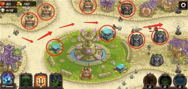 推荐防御塔:军营黑暗骑士塔、死者之墓、魔法塔灼热宝石、军营精英骚扰者以及任意防御塔。