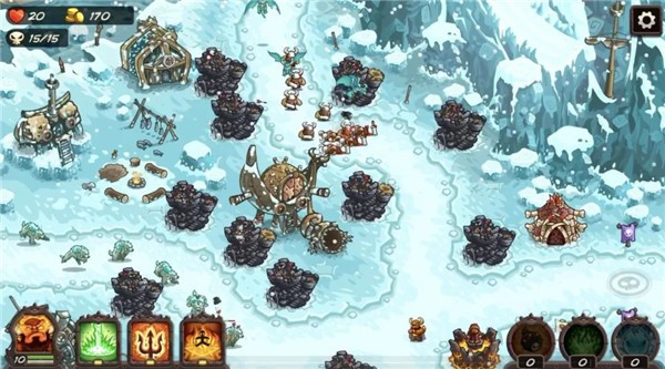 雪国的强度比较适中,适合玩家进阶。需要注意的是,被冻结的防御塔一定要及时点击解冻,否则可能会有一波敌人过来。