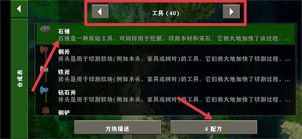 11、利用合成公式的提示,制作合成公式中有用的工具。单击上面切换到合成表。找到需要制作的物品后,选择它并点击公式;