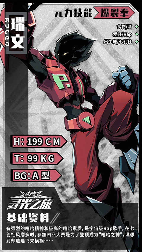 Raven有着浓厚的嘻哈精神和极高的嘻哈品质。他是一位全民说唱歌手,长期在奇创社走红。参加凹凸大赛的目的是为了登上顶峰,成为“嘻哈之神”,却不料却遭遇了意想不到的灾难。