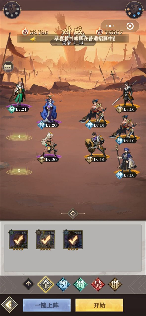 3.根据敌方阵容调整阵型。防御高的武将放在前排,输出和辅助放在后排。