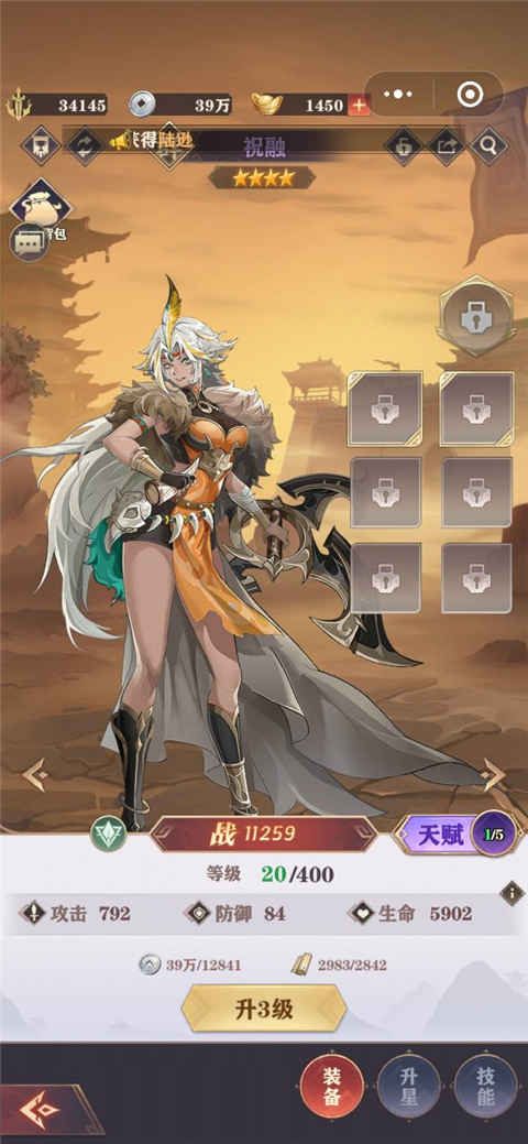 5.有了资源,点击武将即可升级装备武器。