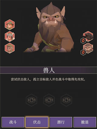 6.前进途中会遇到敌人,玩家可以选择战斗、伏击、潜行、撤退等多种指令;