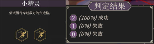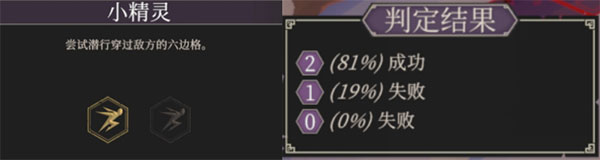 像这里,小编就是想对兽人老师发起埋伏。这时,判断槽会自动识别出我们这个动作需要测试的属性【意识属性】以及需要判断的次数。同时游戏中也会实时显示对应角色的成功概率。