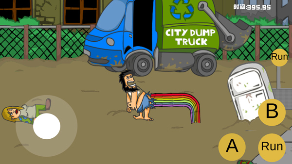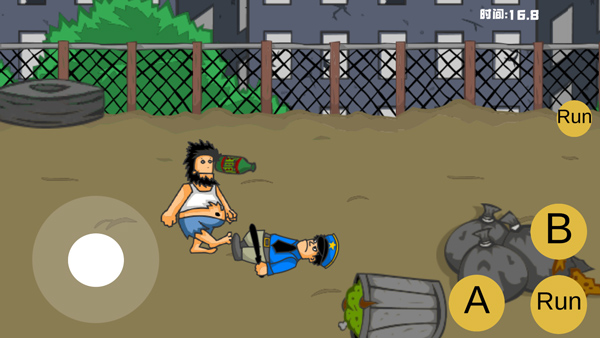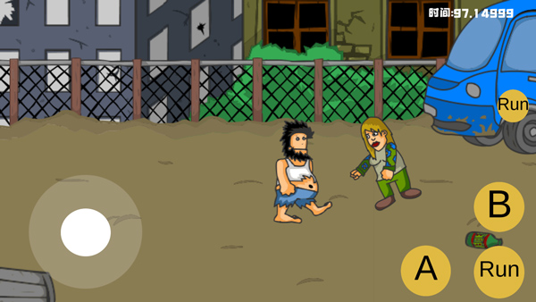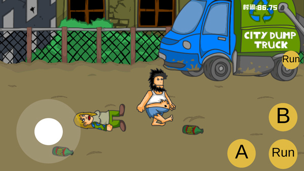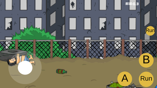 1、打开手机版流浪汉想睡觉。在游戏中,玩家将扮演一名无家可归的人。屏幕左侧控制移动,右侧为攻击按钮和奔跑按钮;