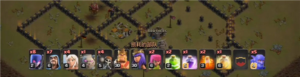 这是由两所学派融合演变而来。两校优势互补,优势互补。尤其是有了蓝胖子以及后来的希法和女王的增援,大部队可以轻松击穿阵内的重要防御建筑。只要消灭掉大部分防空建筑,狗球流就可以不假思索地推下去。
