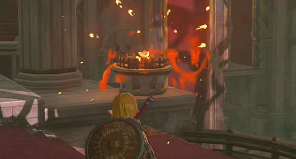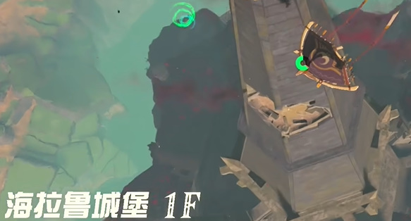 1.首先从海拉鲁城堡顶部飞下来,注意不要飞过头顶,因为位置在底部城堡。