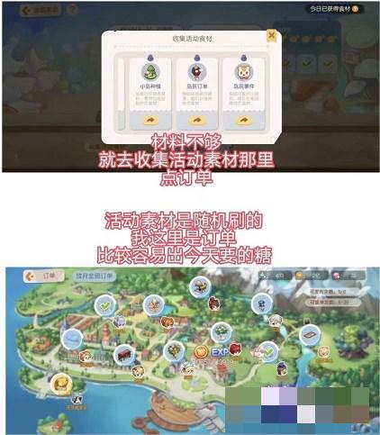 今天做饭需要糖果,材料都是随机产生的。我是来下订单的。你可以参考一下。收集5颗糖果并前往活动工坊制作它们。