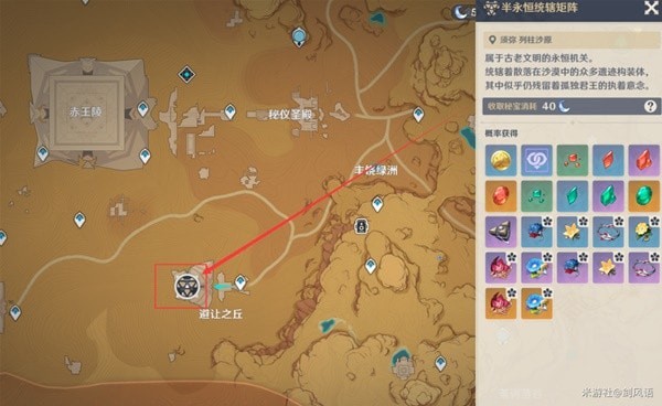 3、【编织金红丝】是镀金旅行团掉落的,分布在须弥地区,如下图。