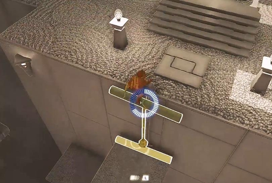 3、进入后拿起石柱与机关融为一体,逆时针旋转即可打开大门。