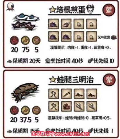 8.饺子:鸟蛋2个,怪兽肉1个,果蔬1个;