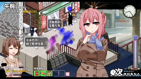 洗碗。好感度20.购买食材。点击彩票旁边的小人即可购买。好感度40触发CG。