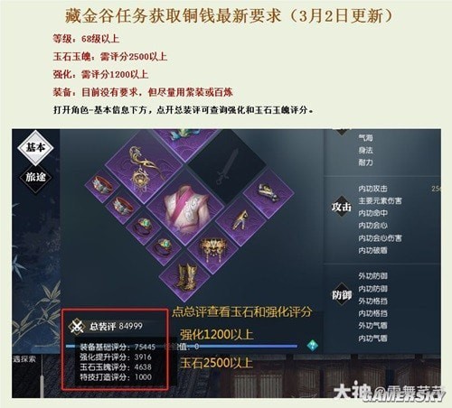 3月2日最新要求更新:1; 68级或以上。 2;强化1200点以上。 3;玉魂评分在2500以上。