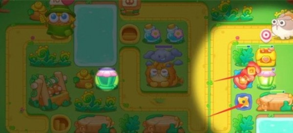 1、在图中位置放置爆竹塔和忍者飞镖,并将爆竹塔升级至满级。鞭炮塔策略范围大,增加了清除障碍的速度。