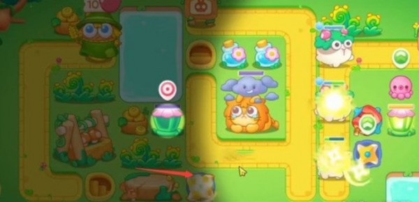 4、如图箭头所示放置雷达塔。雷达塔的高成本攻击会对路径中的兔子和障碍物造成大量伤害。