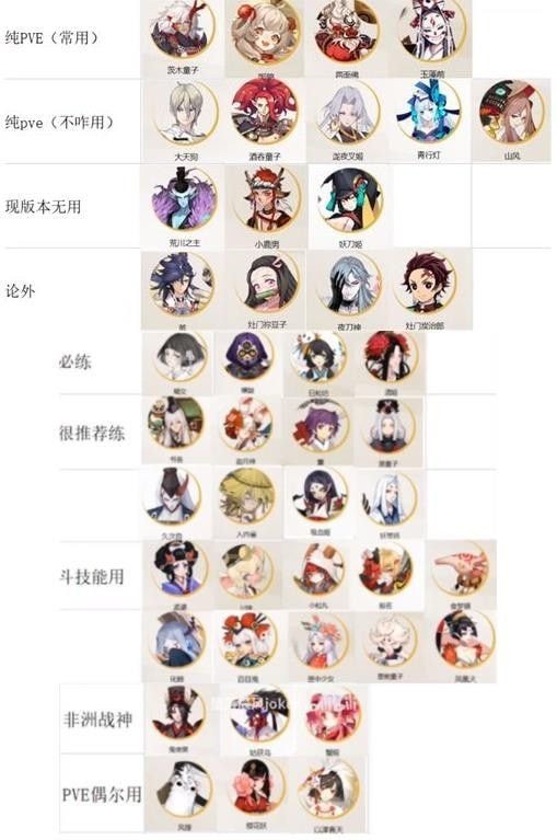 t0:(开荒首选):阿修罗、鬼王酒天童子、战记、紧那罗、魔剑公主。