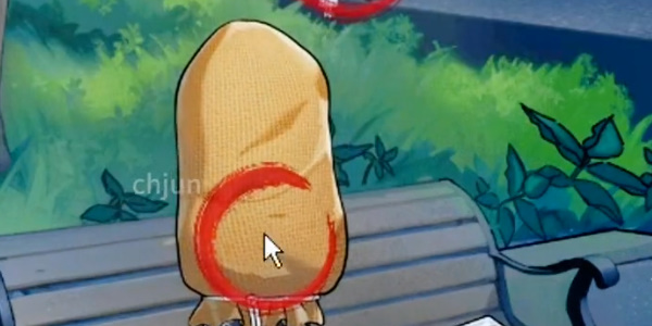 2、然后出现选项,我们选择同意;然后我们来到公园场景,点击物体的腿、远处的小贩、物体头上的麻袋、椅子上的食物、椅子上的剪刀;