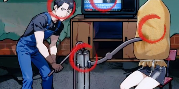 1、进入游戏,点击场景一中带着麻袋的物体、物体的兄弟、电视上的新闻、从水管喝水的物体;