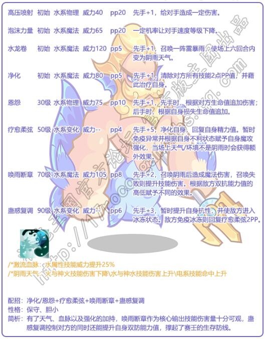 简要分析:与天气有关。在血脉和强化的加持下,呼雨断章作为核心输出技能的伤害是非常可观的。不仅可以通过迷惑复调来控制对手,还可以提高自身的双防能力,支撑游戏之王的生存防御。