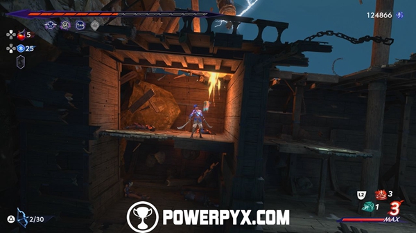 你最终会到达一个叫做灯塔的地方。前往平台顶部,您可以购买该地区的地图。从这里开始,向右移动并让自己跌倒。继续下落,最终你会降落在船的桅杆上(海洋幽灵奖杯/成就将在这里弹出)。这是另一个被称为愤怒之海的区域。
