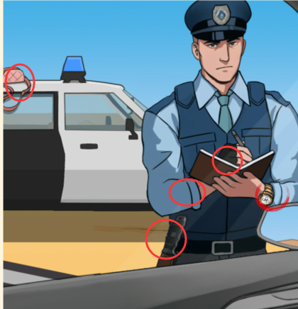 4.然后遇到警察,找到下图所示的点,将袖子向左滑动即可看到划痕