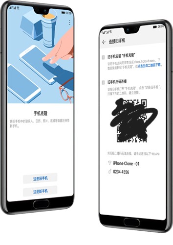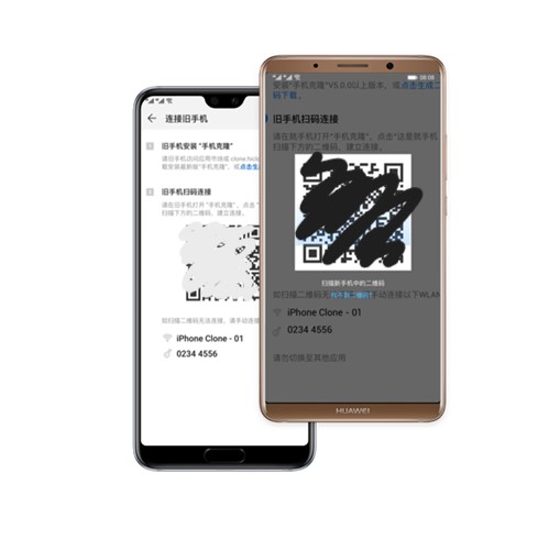 2。使用旧手机在新手机上扫描QR码以完成设备连接。