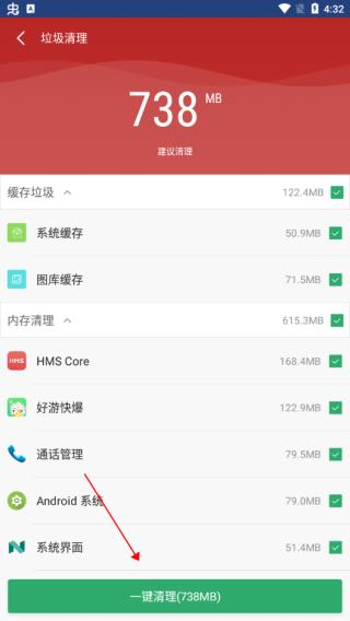 清理超过1G的垃圾文件,并快速解决手机上空间不足的问题。