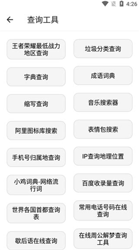 3。单击查询工具以查看国王荣誉,垃圾分类,字典查询,习惯查询,缩写查询和Emoticon软件包搜索的最低战斗力区域。
