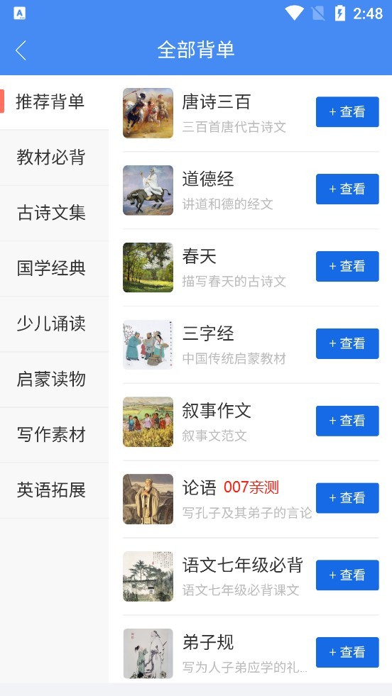 在背鸭背书app中,每个阶段都有丰富的教科书内容,具有清晰的分类和简单的搜索,无需担心丢失要点。该软件还配备了许多有趣的辅助功能,例如大声朗读,测试,背诵培训等,使学习不再僵化,但更容易,更有效。
