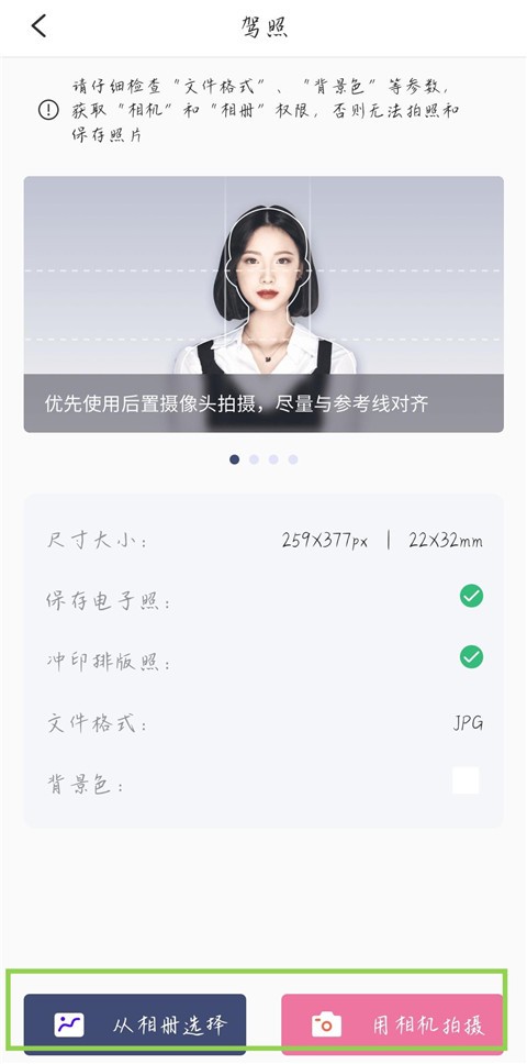 1。打开后,选择要拍摄的ID照片的类型。