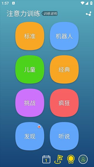 注意力训练应用为用户提供多种训练模式,帮助用户轻松提高专注力。下载安装后,用户可以探索丰富的培训方法和内容。他们不仅可以自由设定个人考试目标,还可以灵活安排培训时长。随着训练的继续,用户的周边视觉能力将逐渐增强。
