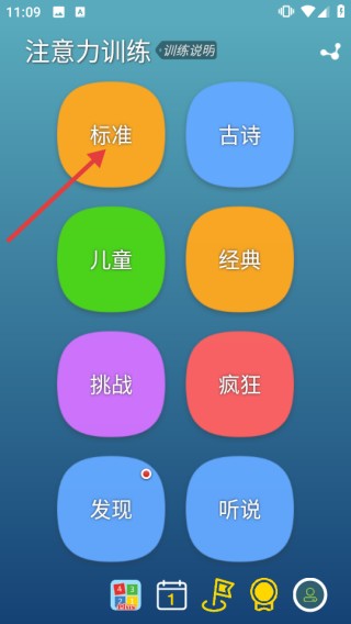 1、打开注意力训练,在训练模式选择界面点击【标准】。