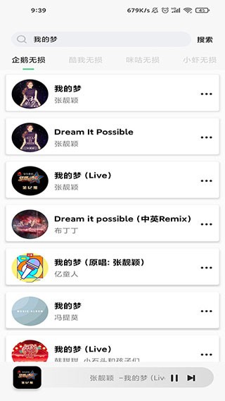 3、用户可以在搜索框中搜索歌曲,选择自己想听的音乐,直接播放。