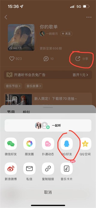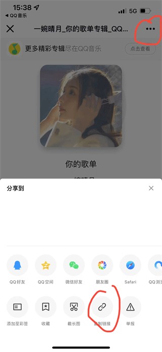 2. 进入您的播放列表页面,先点击“分享”,然后打开分享链接。