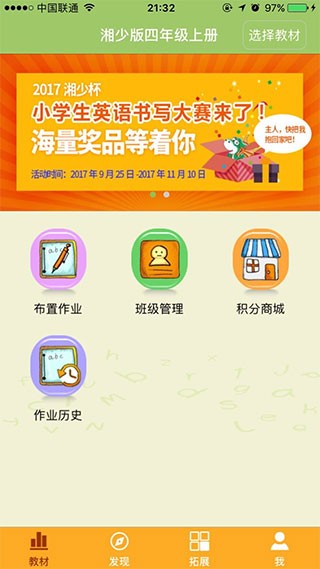 1.E英语宝App与当前主流教材无缝对接,让学生轻松跟随教材主题学习。