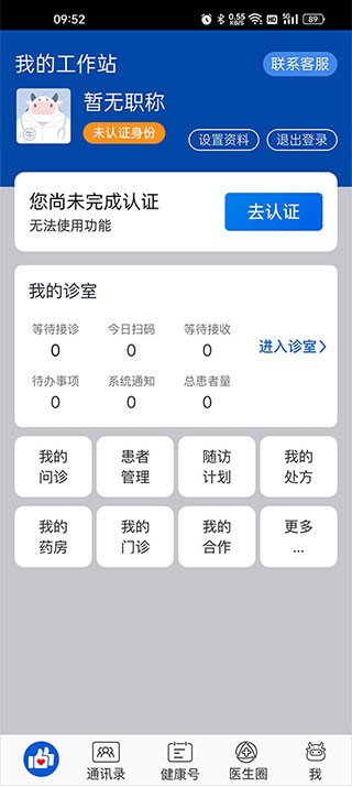 4、上传身份证、医师资格证、医师执业证、工作证即可完成认证。