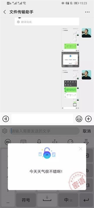 3、复制密语后,我们只需再次点击输入框,打开输入框即可。科大讯飞输入法可以自动帮我们解密(必须开启密字模式)。