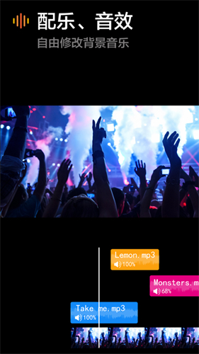 【音乐和音效】自由选择背景音乐和音效,调整播放方式和风格。