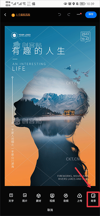 【背景更换】不喜欢背景怎么办?首先点击右下角添加,然后向右滑动点击背景按钮,最后选择合适的背景。