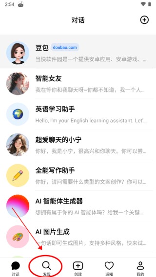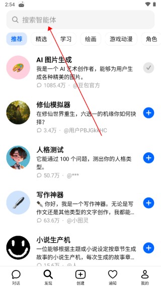 2. 在发现页面,点击搜索栏,输入所需的AI代理