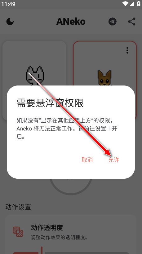 7. 需要开启浮窗权限,点击允许。
