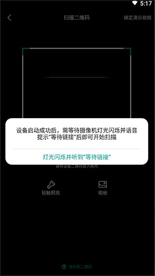 3. 打开相机,听到语音提示,点击“已听到”,等待连接。