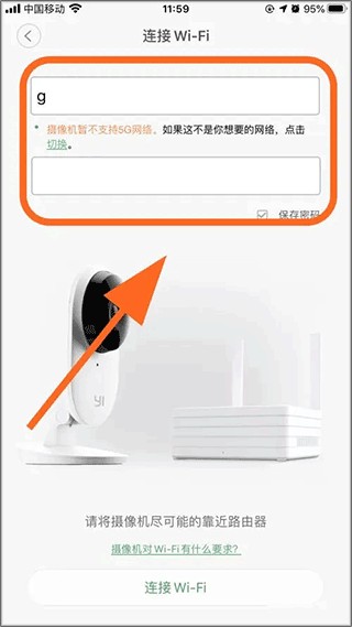 4. 将手机上的二维码对准摄像头。扫描成功后,输入WiFi名称和密码即可连接。