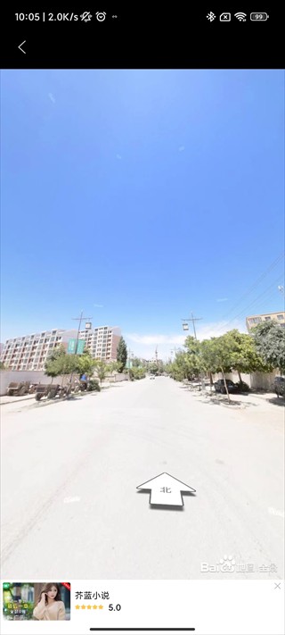 3.点击下方小地图切换至街景地图,点击白色箭头移动查看位置;