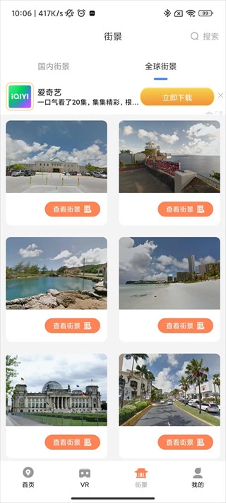 5.在街景中,您不仅可以观看国内街景,还可以观看全球街景。点击右上角搜索,搜索您喜欢的街景观看;