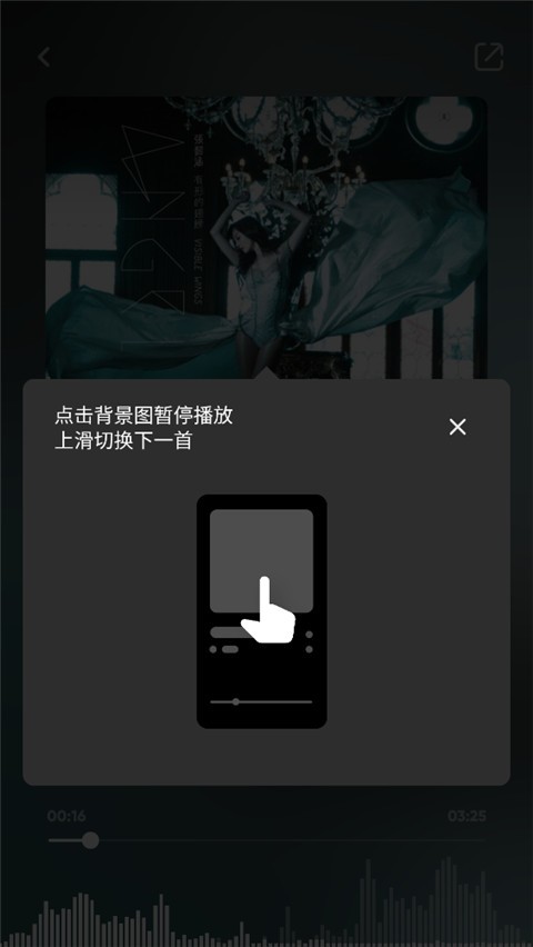 2. 点击背景图片停止播放,向上滑动切换至下一首歌曲。