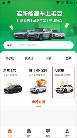 进入软件后,我们点击首页的【AI汽车推荐】。