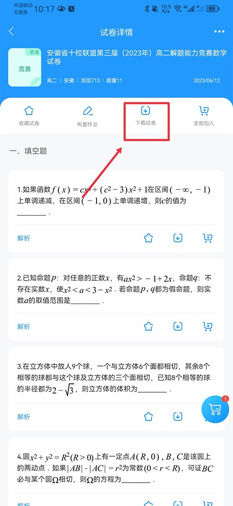 3.进入试卷详情界面后,点击下载试卷(部分试卷需要会员才能下载)